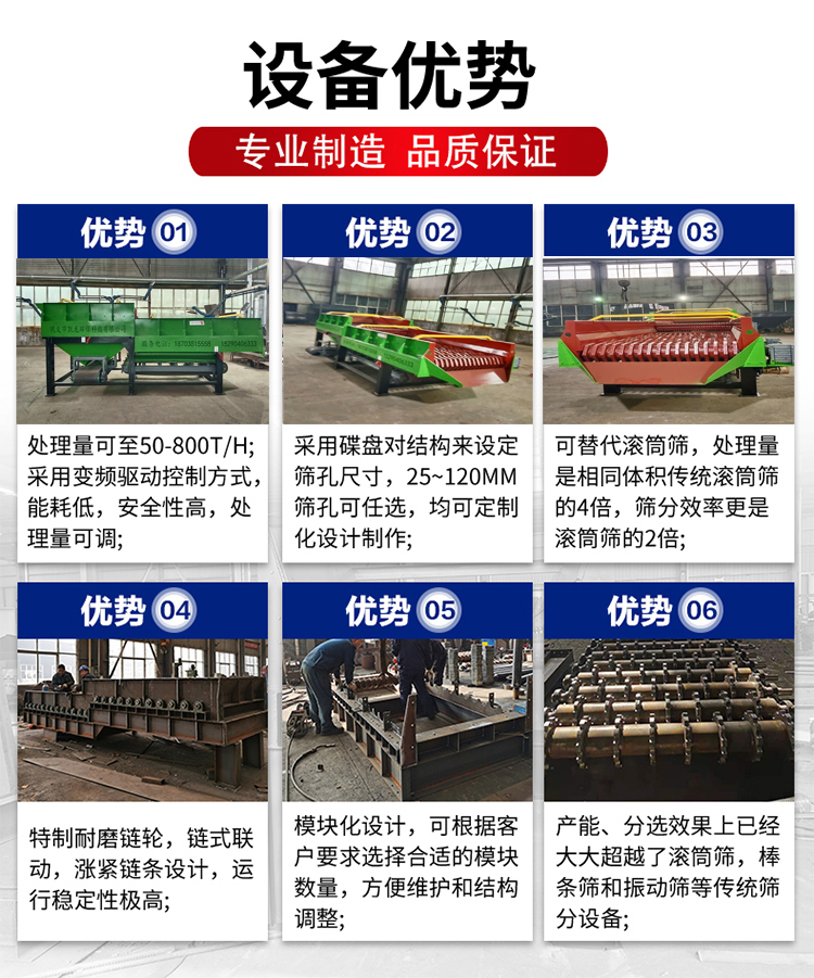 7、 篩分效率高,可實現2—80mm之間的物料篩分,同時可進行1—5級物料的篩分