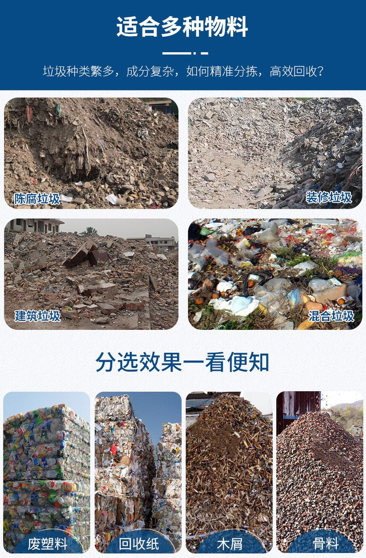 垃圾分揀設備通過自動化技術將垃圾進行分類處理,大大提高了垃圾的回收利用率。在過去,由于技術和人力資源的限制,大量可回收物品被混雜在其他垃圾中一起填埋或焚燒,這不僅浪費了資源,也加劇了環境污染。而現代的垃圾分揀設備能夠精確地識別和分離出紙張、塑料、金屬等可回收材料,使得這些資源得以重新進入生產循環,減少了新材料的開采和加工,從而節約了能源和減少了碳排放。